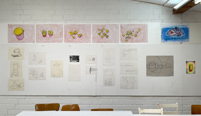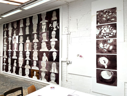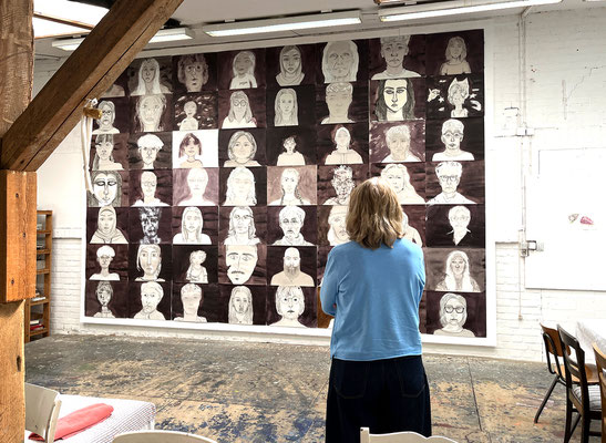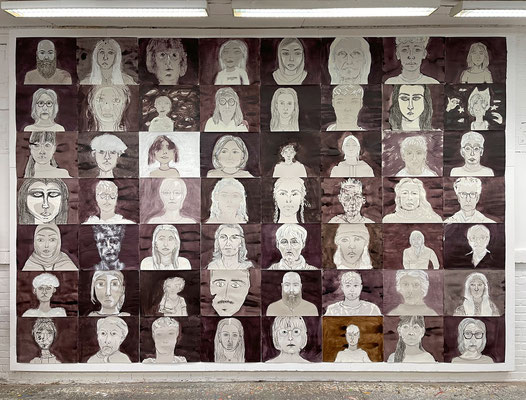 Das Hauptwerk ENERGIEFLUSS ist die erste Gemeinschaftsarbeit von allen Teilnehmern des Malkasten Warendorf und besteht aus 56 Selbstportraits.